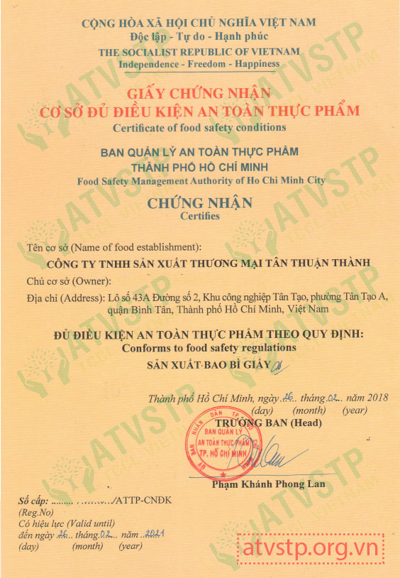 Dịch vụ giấy phép vệ sinh an toàn thực phẩm